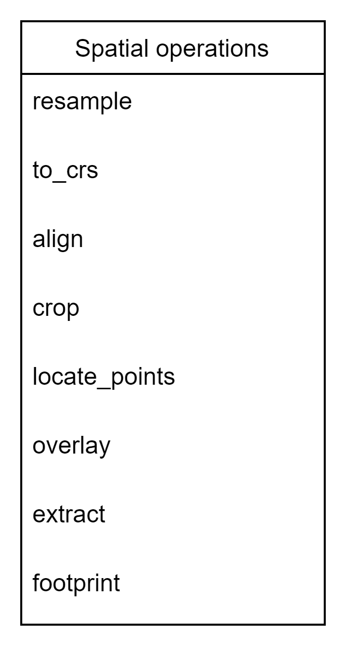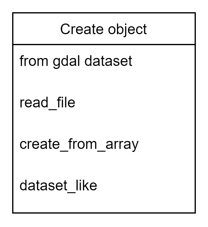 - The Dataset object has the following attributes, which enables you to access all the stored data in you raster file (GeoTIFF/NetCDF/ASCII)